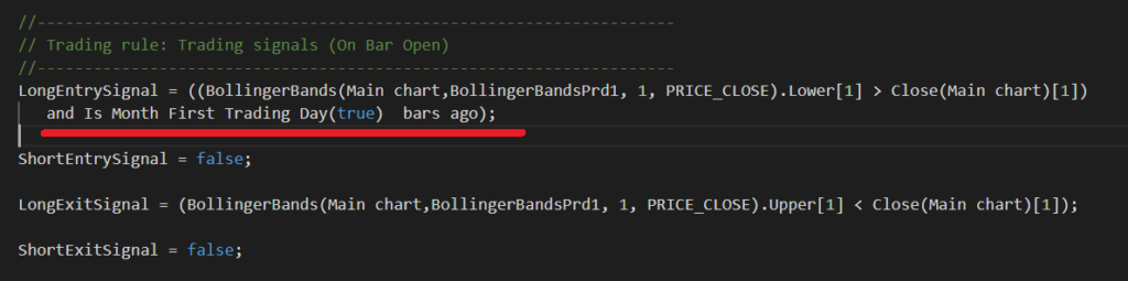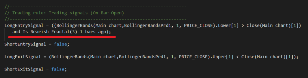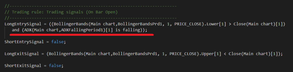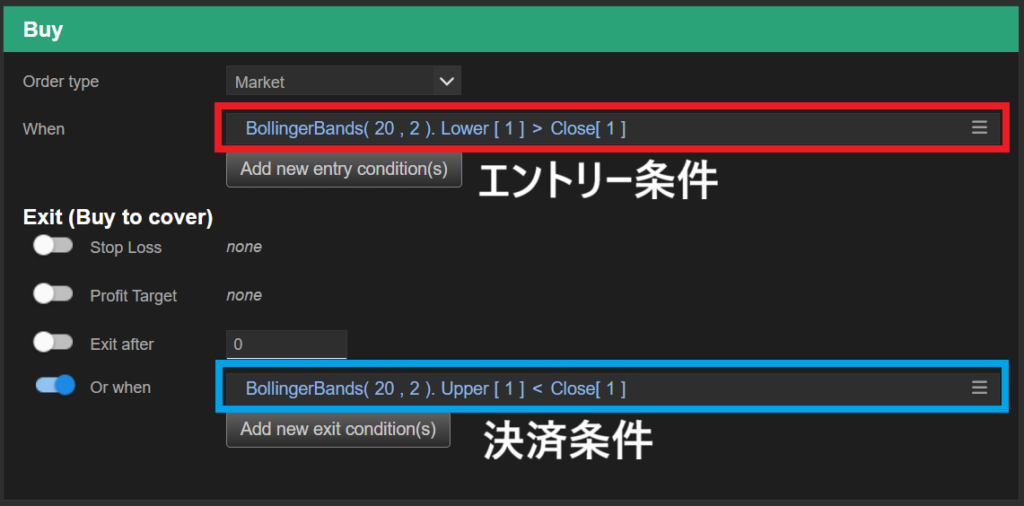 買いエントリー:終値がボリンジャーバンドの−2σラインを下回った場合