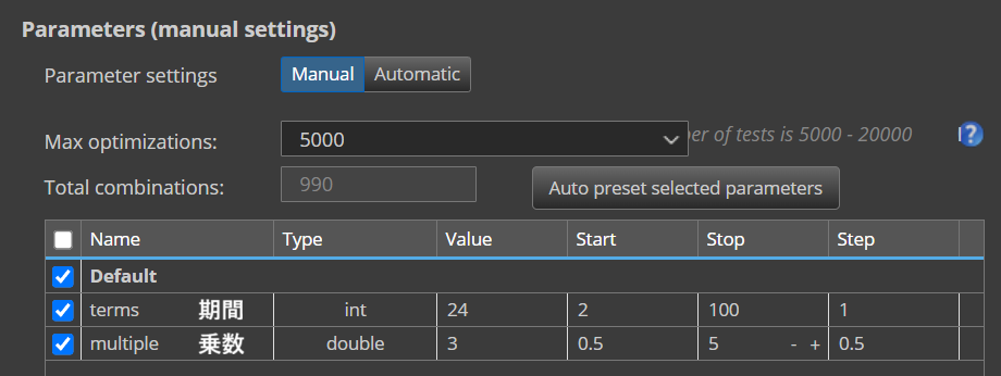 ■各パラメータの最適化設定