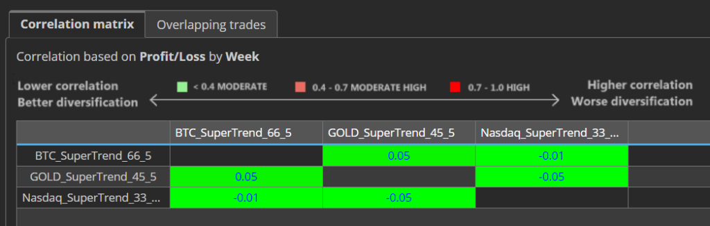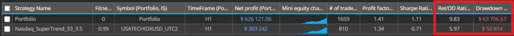 これは、ある戦略がドローダウンに陥っている局面でも、他の戦略が利益を上げることで全体の安定性を高めていることを意味します。まさにこれがポートフォリオの力です。