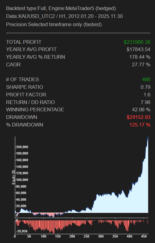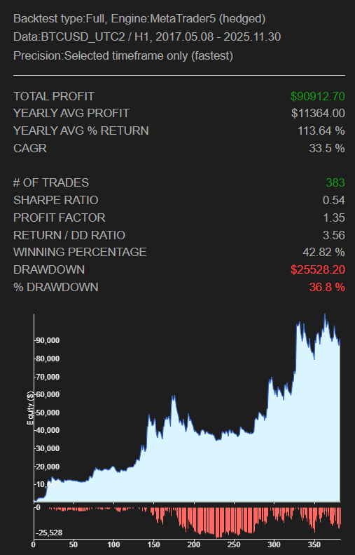 勝率は約42%でしたが、トレンドフォロー型の戦略では一般的に30~40%程度が標準的な水準であり、全く問題のない結果です。むしろ、トレンド発生時に大きな利益を積み上げるという戦略の特性がよく表れています。