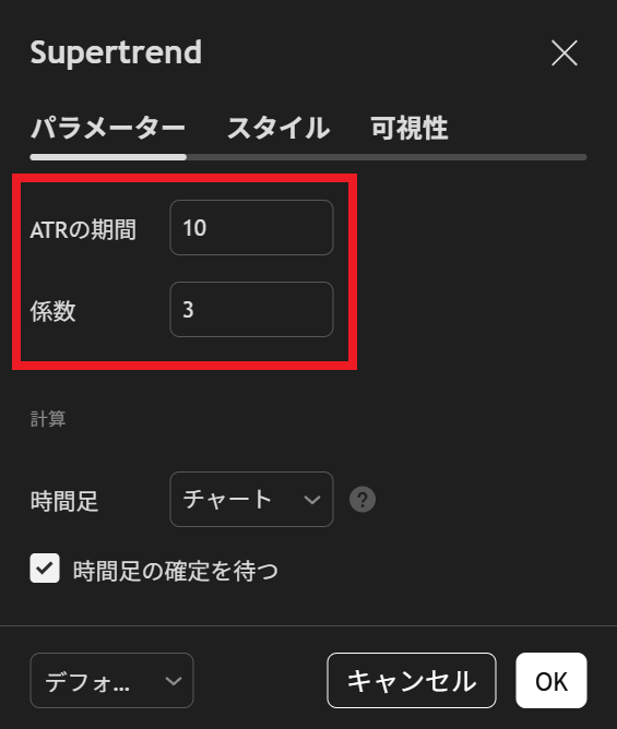 SuperTrendの計算に使用される主なパラメーターは以下の2つです。