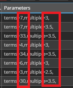 リターンドローダウンレシオ上位のパラメータ値