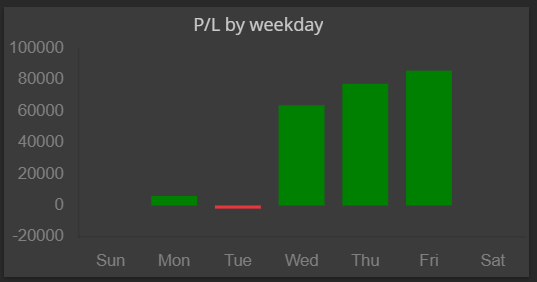 ベース戦略のパフォーマンスを詳しく確認すると、この戦略は水曜・木曜・金曜に利益を上げていることが分かります。